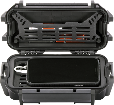 Los estuches rígidos para objetos personales RUCK CASES de PELI™ son estancos y están equipados con un revestimiento de goma moldeado y un revestimiento EVA acolchado con exoesqueleto, capaz de proteger los objetos de valor contra caídas, golpes, polvo, suciedad, nieve y agua. La carcasa exterior de ABS es resistente a la abrasión, a arañazos e impactos, gracias a una ergonomía, que le permite resistir los entornos más hostiles. Las RUCK CASES vienen con prácticas soluciones organizativas, así como una tapa extraíble y bandejas divisorias con asas de nailon que ofrecen varias configuraciones de almacenamiento para los objetos personales más diversos, como teléfonos y carteras, equipos de exteriores, botiquines de primeros auxilios o multiherramientas. Las RUCK CASES de Peli™ están disponibles en color negro y en tres tamaños diferentes, de modo que se adapten perfectamente a una gran variedad de necesidad y estilos de vida.