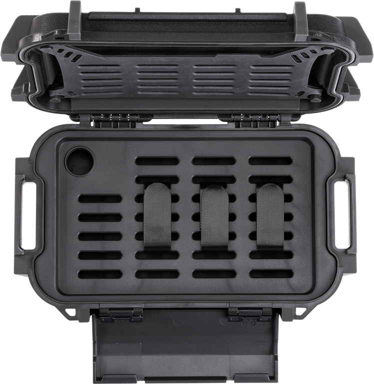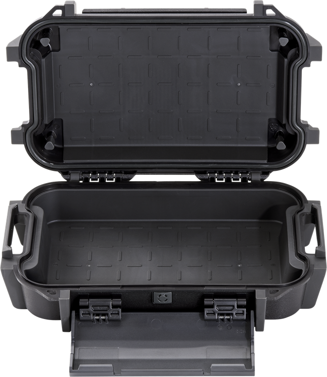Los estuches rígidos para objetos personales RUCK CASES de PELI™ son estancos y están equipados con un revestimiento de goma moldeado y un revestimiento EVA acolchado con exoesqueleto, capaz de proteger los objetos de valor contra caídas, golpes, polvo, suciedad, nieve y agua. La carcasa exterior de ABS es resistente a la abrasión, a arañazos e impactos, gracias a una ergonomía, que le permite resistir los entornos más hostiles. Las RUCK CASES vienen con prácticas soluciones organizativas, así como una tapa extraíble y bandejas divisorias con asas de nailon que ofrecen varias configuraciones de almacenamiento para los objetos personales más diversos, como teléfonos y carteras, equipos de exteriores, botiquines de primeros auxilios o multiherramientas. Las RUCK CASES de Peli™ están disponibles en color negro y en tres tamaños diferentes, de modo que se adapten perfectamente a una gran variedad de necesidad y estilos de vida.